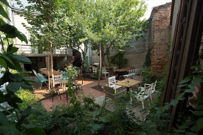 - Simbio – Unul dintre cele mai îndrăgite localuri de brunch din București, Simbio (str. Negustori) servește mic dejun pe tot parcursul zilei, într-o atmosferă relaxată și verde. Situat într-o casă veche cu grădină, este refugiul perfect pentru dimineți leneșe. Preparat vedetă: Simbio Breakfast – combinație generoasă cu ouă (la alegere), ciuperci trase la tigaie, avocado, halloumi la grătar, bacon și salată, servită cu pâine prăjită. Prețuri: ~ 35–55 lei/porție consistentă. Avantajul aici este că nu trebuie să te trezești devreme: „La Simbio găsești mic dejun toată ziua, așa că nu trebuie să pleci de acasă cu noaptea-n cap” . Terasa din grădină, umbrită de pomi fructiferi, face deliciul clienților – te simți ca în curtea bunicii, cu ciripit de păsărele și miros de cafea proaspăt măcinată. Tot ce e în meniu (de la clătite fluffy la toast-uri cu somon) este lăudat, așa că vei reveni aici iar și iar, garantat.